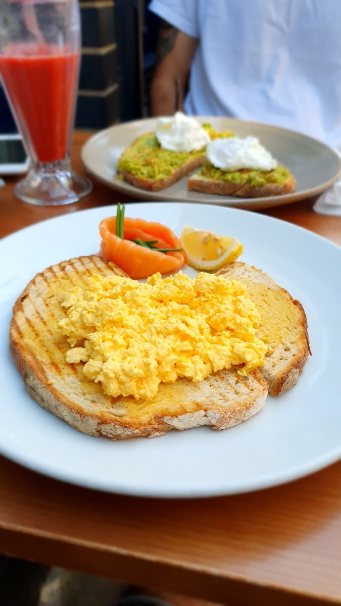 Got recommended this as one of better brunch places in Hampstead and wasn’t wrong! Sat outside for brunch - would be tricky in winter to get a table at weekend, by time we finished around 1130 there was a 10 person queue. Great food - shaksuka and scrambled eggs on toast. Juices also nice and fresh and generally not overpriced like it can be in the area. Very friendly service