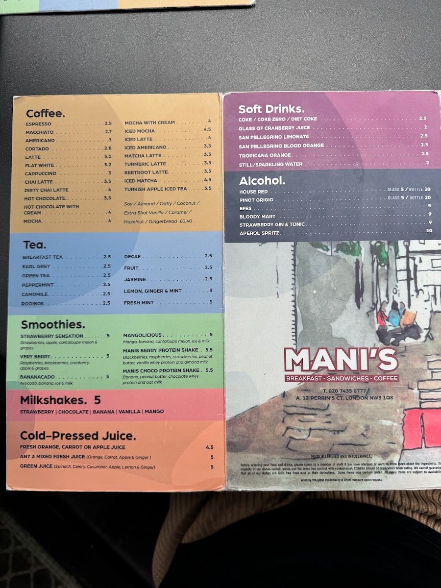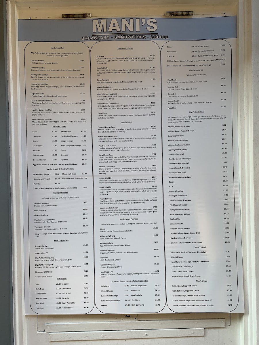 Mani’s offers a thoughtfully curated menu that blends the comfort of a casual café with the heartiness of a breakfast spot and the versatility of a neighbourhood restaurant. The selection invites you to linger over both classic and contemporary dishes, perfect for starting your day or enjoying a relaxed lunch.